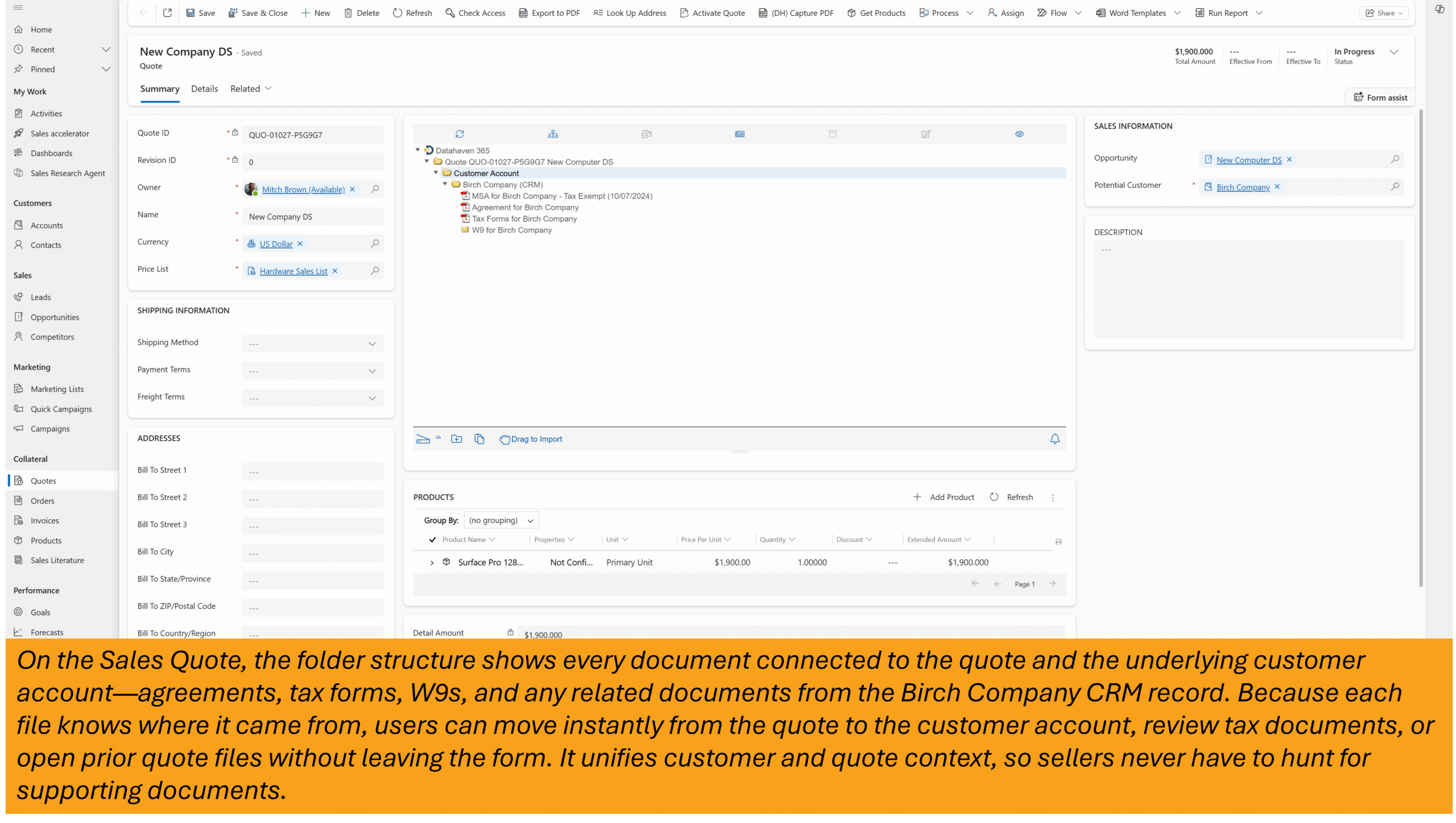 Datahaven is a comprehensive, AI-enabled document management and automation solution that is embedded directly within the Microsoft business applications your teams use every day, including Business Central, Finance & Supply Chain, Customer Engagement (CRM), Teams, and Power Apps.