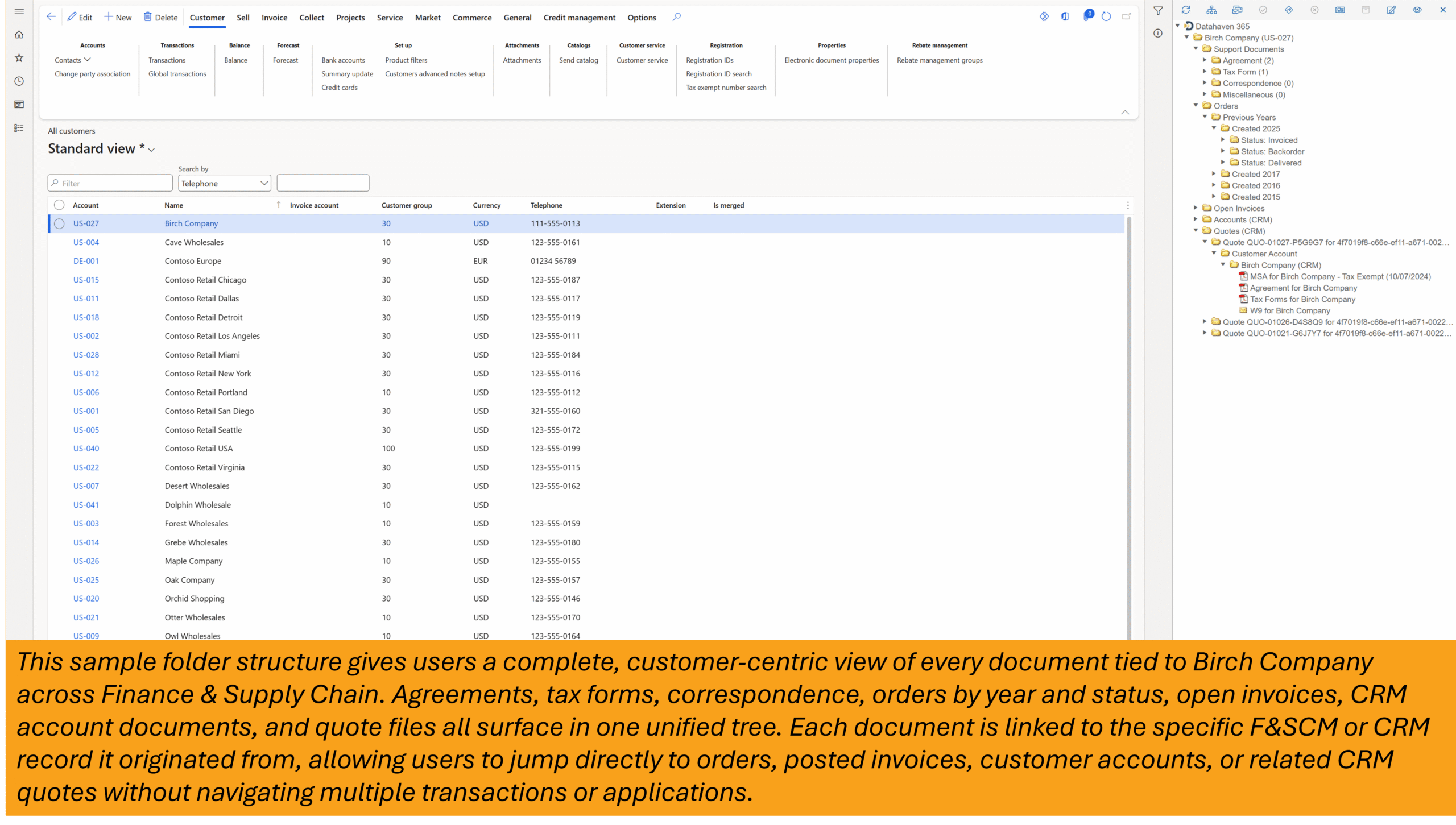 Improve operational efficiency and reduce document chaos with automated archiving inside Microsoft Dynamics. Datahaven 365 captures, classifies, and stores every document, email, and file in a clean, organized structure that updates on-the-fly as your data changes.